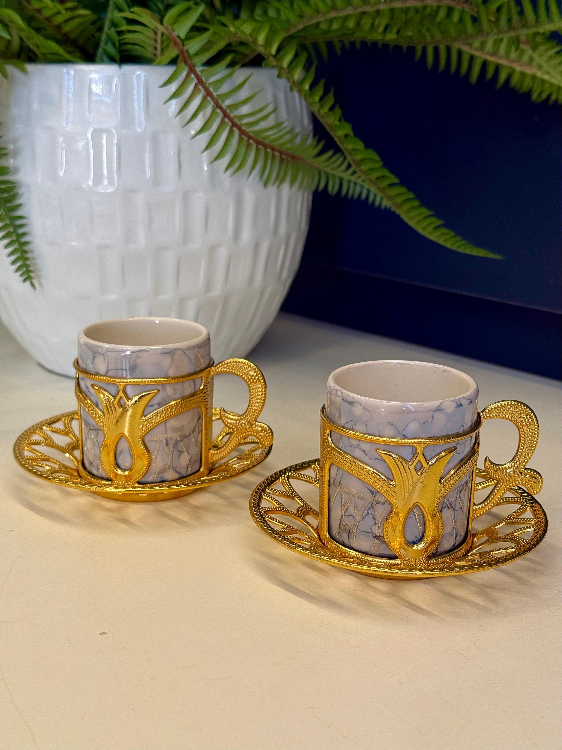 Xícara Turca - Par - Vidro - Azul e Dourado